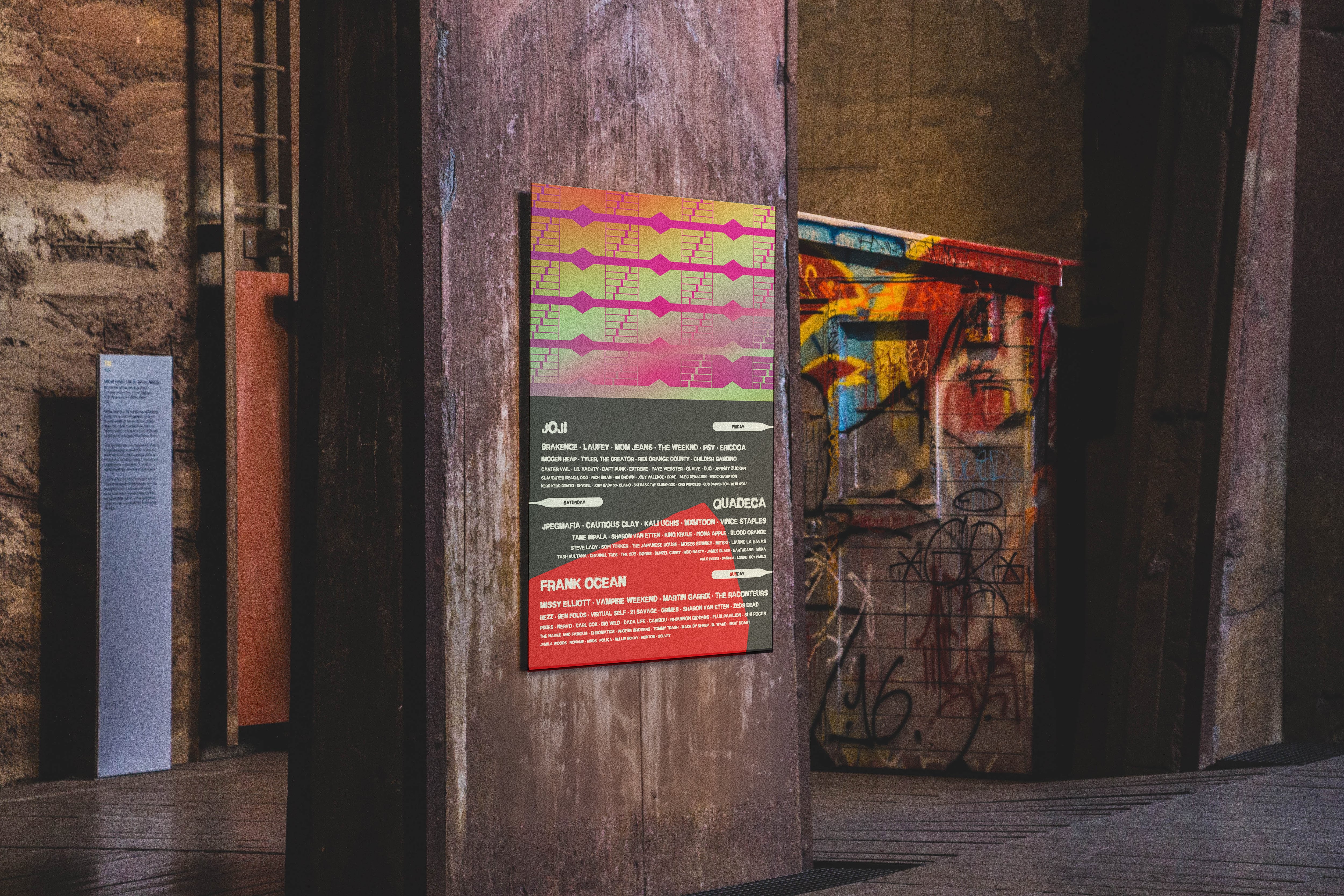 These urban mockups showcase how WWIMF’s lineup posters function in real-world environments. Integrated into cityscapes, transit stations, and public walls. The placements emphasize visibility, accessibility, and the posters’ ability to stand out in diverse, high-traffic settings.